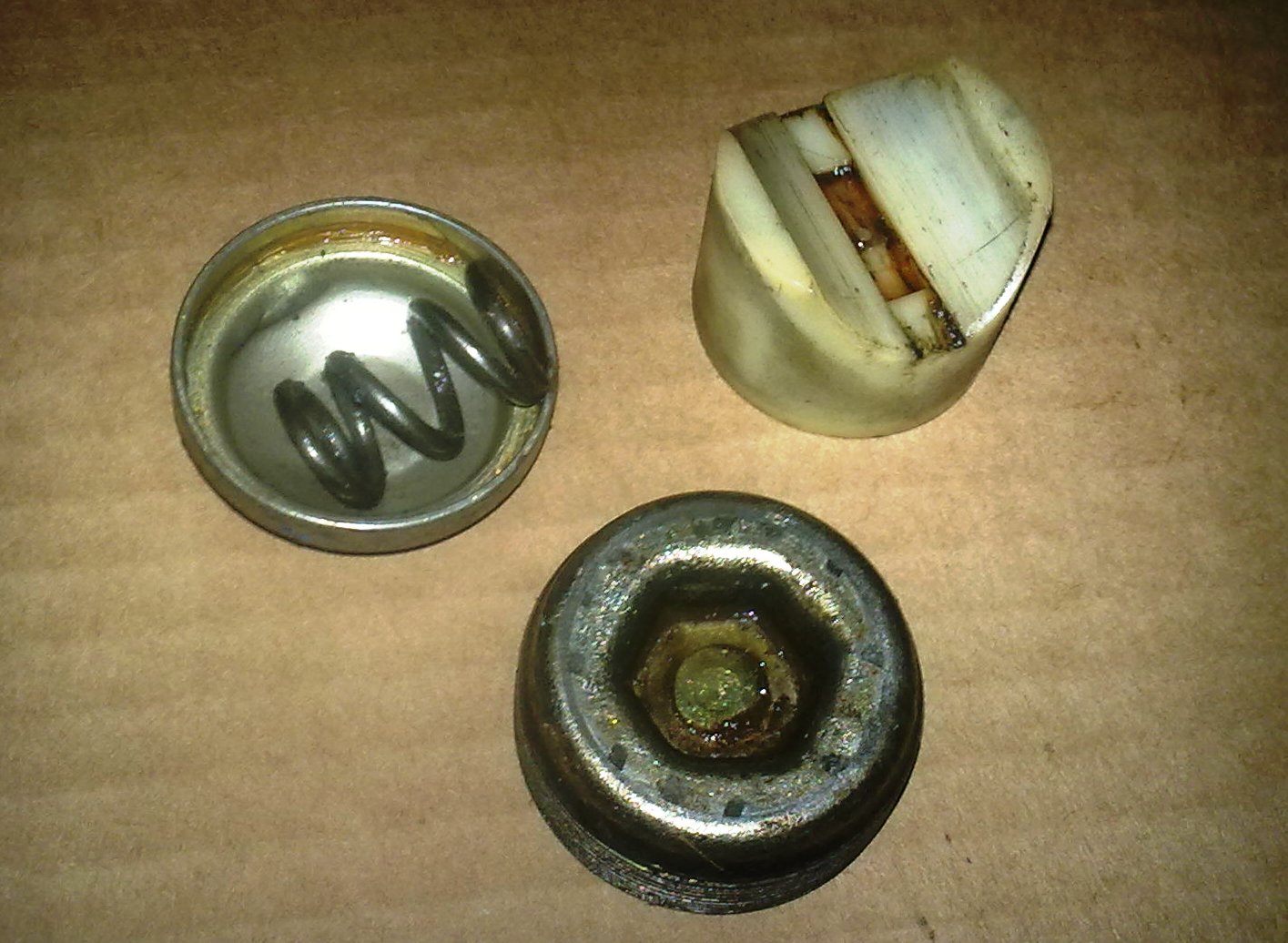 Выход: нужно просто открутить на яме стабилизатор! Всего 2 гайки и 4 болта. Далее, сместив стабилизатор, до крышки становится возможным добраться ключами. Отвернув крышку, под ней вы обнаружите пружинку и упорный сухарь, поджимающий рейку. Никаких регулировочных гаек в данной конструкции нет. Зацепление регулируется на заводе путем установки под крышку набора стальных прокадок нужной толщины (пара из них была тоньше любой фольги).