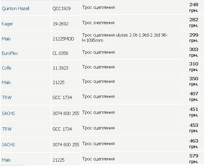 Я нашел оригинал: длина 1095 мм - цена 503 грн. (фирма PEUGEOT 2150P6), если длина 1003 мм - цена 688 грн. (фирма PEUGEOT 2150AN).