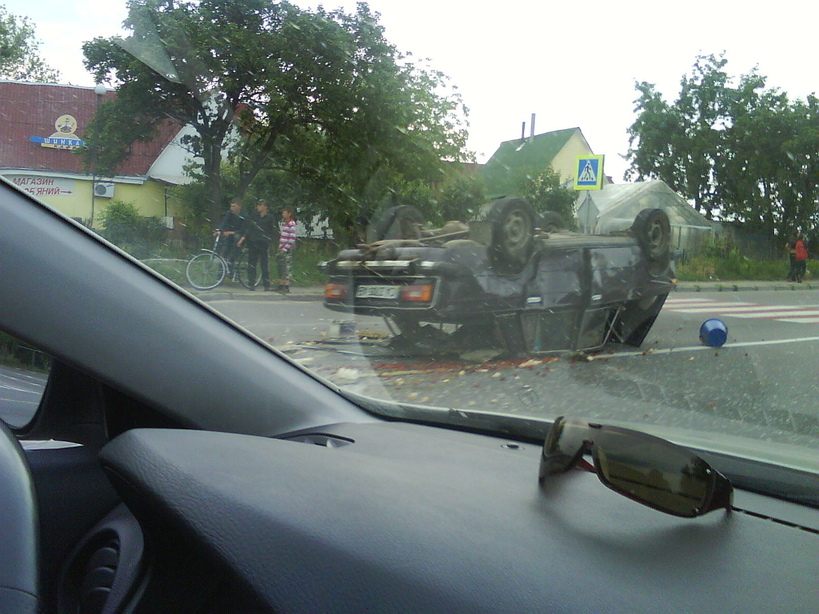 Последствия на Лицо, городок Мироновка, Пыж (на первой фотке видно) не пропустил Жигу (Та шла по трассе...) и влупил в левое заднее, та пыталась уйти и в результате удара лягла на крышу....все живы, и вроде целы...
