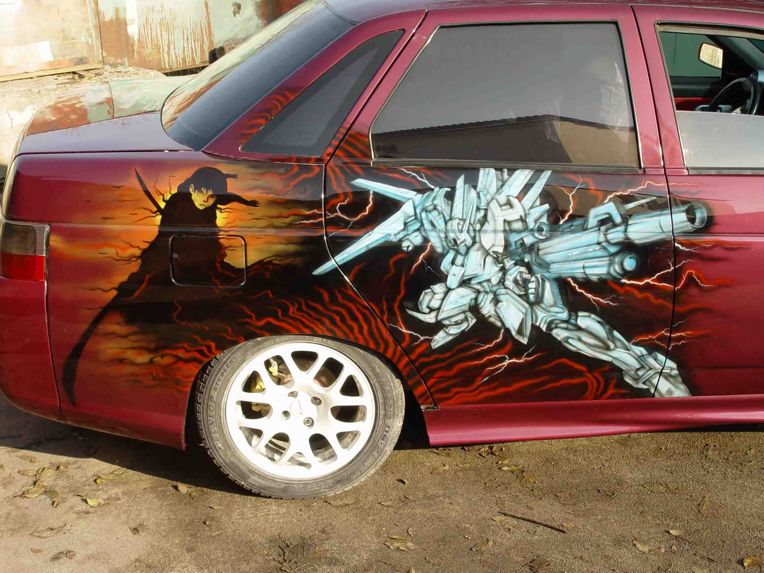 | типок обошолся в 150 у.е - рисовал день с лакировкой - на утро хозяин забрал машину. гитара 100 у.е. рисовалась день с лакировкой