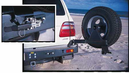 Сегодня видел на китайском ГритВолле интесное крепление запаски. Поворотная основа находится скраю под бампером, а замок - на бампере сверху, ближе к средине. таким образом вся конструкция держится на усилителе бампера, а петли и дверь не требуют вмешательства. Попробую позже изобразить или найти в интернете и выложить.