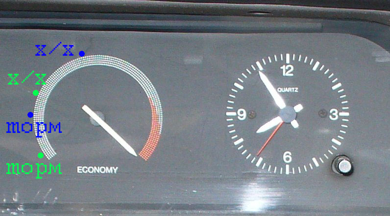 Но клапан х/х у меня похож разве что на Bravo 1,4-1,6. Поэтому рекомендую ориентироваться на показания экономайзера. На фотке отмечены положения стрелки что соответствовали режимам х/х прогретого двигателя и режиму торможения двигателем. Раньше было - точки синего цвета; теперь показания изменились - точки зеленого цвета.