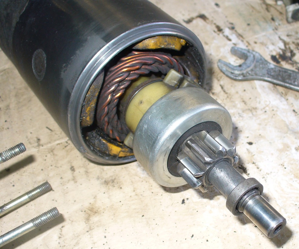 Но потом я подумал что щетки залегли, и решыл раскрутить стартер в холостую. Перемкнул на полсекунды контаты на втягивающем реле, а стартер еле-еле проворачивался. Потом я перемкнул его на 5 сек. Стартер вконце разогнался и с задней крышки повалил дым. Крышка перегрелась. После это машина завелась как ракета. Думаю там втулка клинит - счас буду чистить и смазывать её. Wink