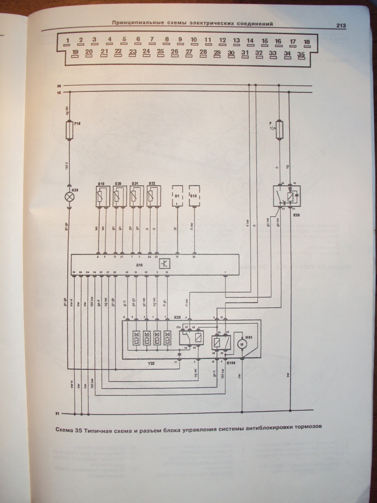 | Типовая схема и разъём ЭБУ системы АБС. |