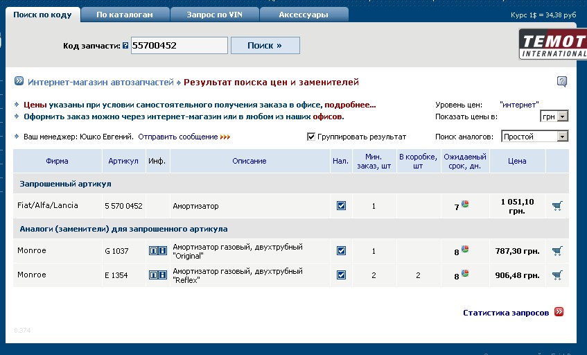 Заехал в АТЛ, посчитали : Газовые Каяба -685 грн, + пыльник с отбойником Монро -349грн, + замена 120 грн, + скидка 10%. Итого один - 1040грн.