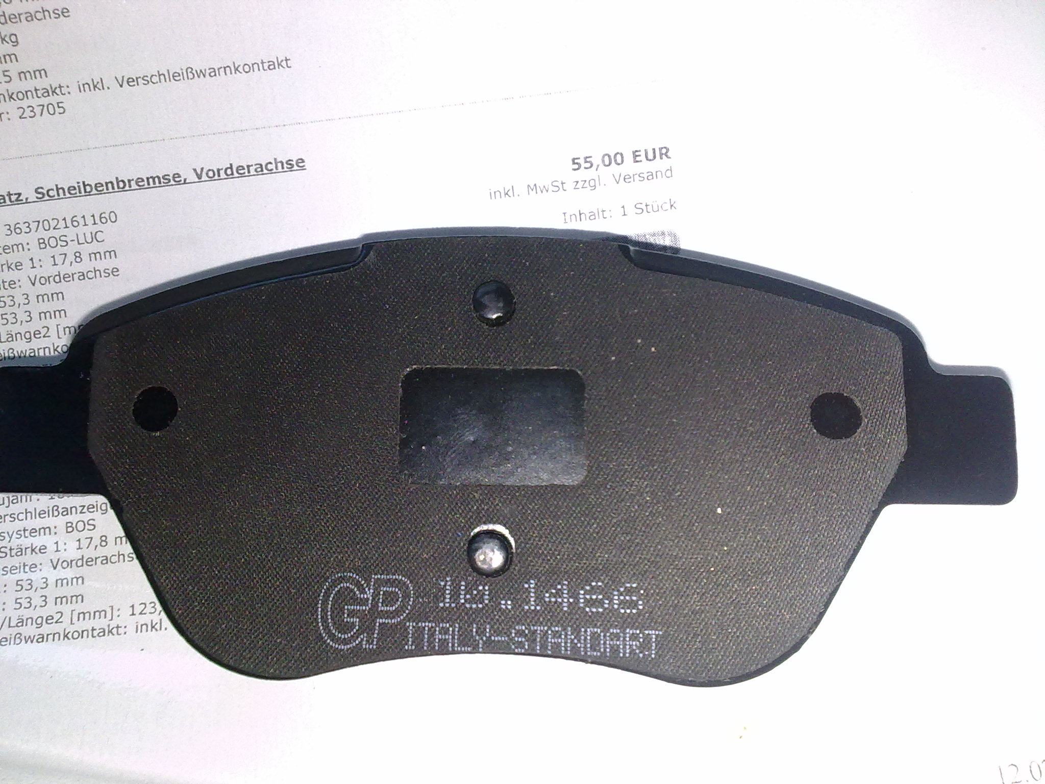 Прошу теоретической помощи. купил передние тормозные колодки странного производителя GP с номером 10.1466 (23705) см. фото. Все размерности совпадают с оригиналом, покупал не на базаре, а на Белорусской. Продавец сказал, что будут ходить до 30 000 км - 100%.