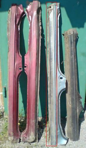 У мена местами прогнили внешние накладки. Вскрытие показало, что сам порог целый, местами ржавый.