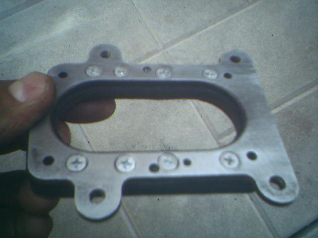 Через четыре отверстия в которые вкручиваются болты карбюратора стянул две части данной прокладки верхнюю и нижнюю (на нижней даже не осталось ни каких признаков что вся конструкция изначально была залита резиной). Зажал все это хозяйство в тиски и просверлил восемь отверстий сверлом на 3,3 (по четыре отверстия на сторону). В этих отверстиях нарезал мечиком резьбу, сверлом на 8 сделал фаски под шапки винтов. Стянул обе части винтами 4х10. По нижней части, что крепится к коллектору вырезал прокладку из милиметрового паронита и промазав герметиком прикрутил уже готовую конструкцию к коллектору. Весь процес фотографировать небыло времени, а готовая отреставрированная резинка выглядит так: |
