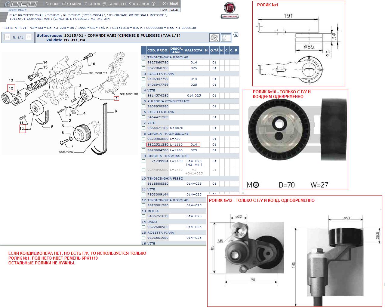 Tolib огромное спасибо!за разъяснения,жаль что вариант с роликом №1 не мой,потому как в моей машине изначально стояли сверху гидроусилитель,генератор и внизу кондиционер.Смотрел Скудо в котором стоит сверху генератор и внизу гидроусилитель вот тут ваш вариант.Пока поставил ролик с Таврии не знаю на долго ли,но машина нужна каждый день,завтра не большой дальнечок 1100км предстоит если ролик выдержит то нормуль если нет то потеря 62гр и небольшая токарная обработка не великая потеря,жаль только новый ремень может накрыться.