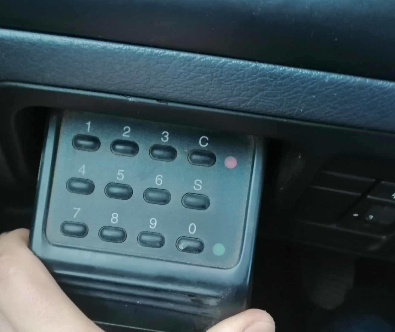 На торпедо внизу слева от руля (возле корректора фар) есть "дверка", открываю её, там кнопки с цифрами и двумя буквами и две лампочки.