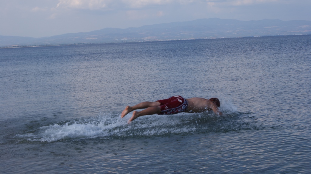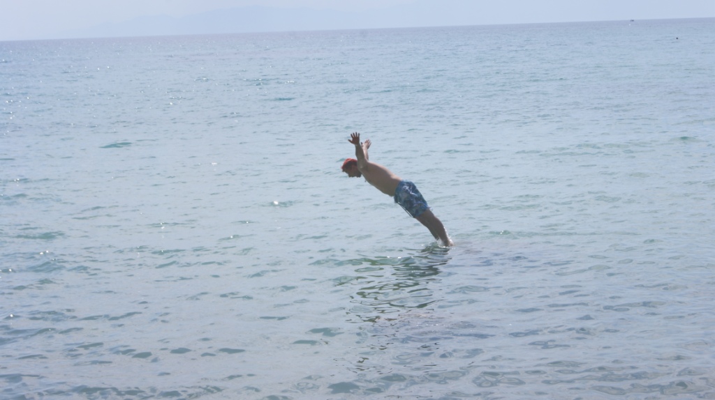 в 12-00 мы уже купались в море Эгейское море это сказка! видимость под водой до 30 метров, вода бирюзового цвета, прям как в сказке описывают