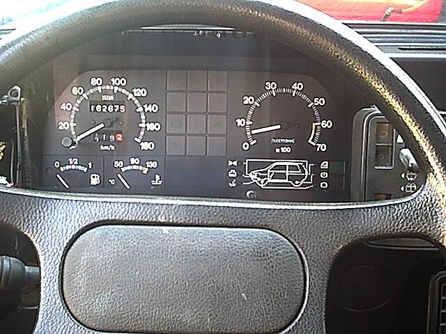 ну вы блин даете нет и никогда небыло там никаких датчиков машинка нарисована чтоб както занять пустое место в заглушке приборки 1,9 или 2,2 бар это просто напоминание о том какое давление должно быть в шинах и не более того. единственно в турбиках были приборки с машинкой по центру и под ней лампочки с символами, во всех остальных это просто рисунок без какой либо функциональной нагрузки. княпочка принажатии которой загорается ламплочка это просто контролька для проверки работоспособности лампочки уровня тормозной жидкости.