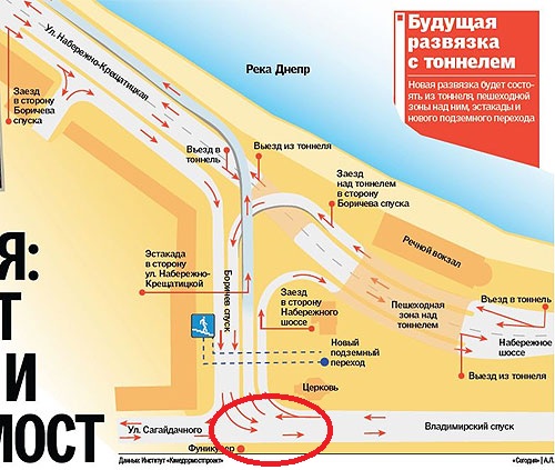 объективно владимирский спуск нужно делать реверсным и 5 полос: утром 3 вверх 2 вниз, вечером наоборот. потому что вверх получается что из 2 (в основном 1 потому что 2-я как парковка) Сагайдачного + 3 полос Набережной все сходиться в 2 полосы, а наверху опять 5 полос. и вниз тоже: 3 полосы Крещатика + 3 полосы Грушевского в 2 полосы спуска.