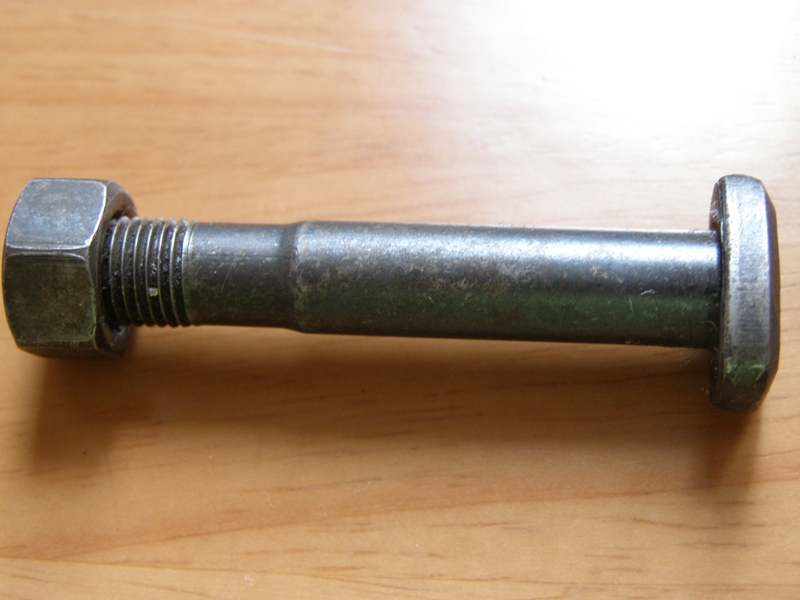 Для начала необходимо купить вот этот болт (на фото), продается на любом авторынке от жигуляторского шатуна. Стоит пять гривен вместе с гайкой. Толщина его 9 мм. Болт куплен, поддомкрачиваешь, снимаешь колесо. Всё, доступ к пальцу у тебя открыт. Выбиваешь старый болт (толщина его 8 мм), борешь дрель со сверлом 9 мм и проходишь отверстие, проходит легко, вместе с шаровым пальцем. Затем. Болт длинноват, можно отнести к токарю и обрезать его нужной длинны с дальнейшим нарезанием резьбы. Я не заморачиваюсь, беру две гайки на 10 мм и прохожу тем же сверлом, ставлю с одной и с другой стороны, затягиваю. Затягивать можно до сраки, болт и гайка очень крепкие. После такой процедуры, хер он (палец) куда-нибудь шевельнется.