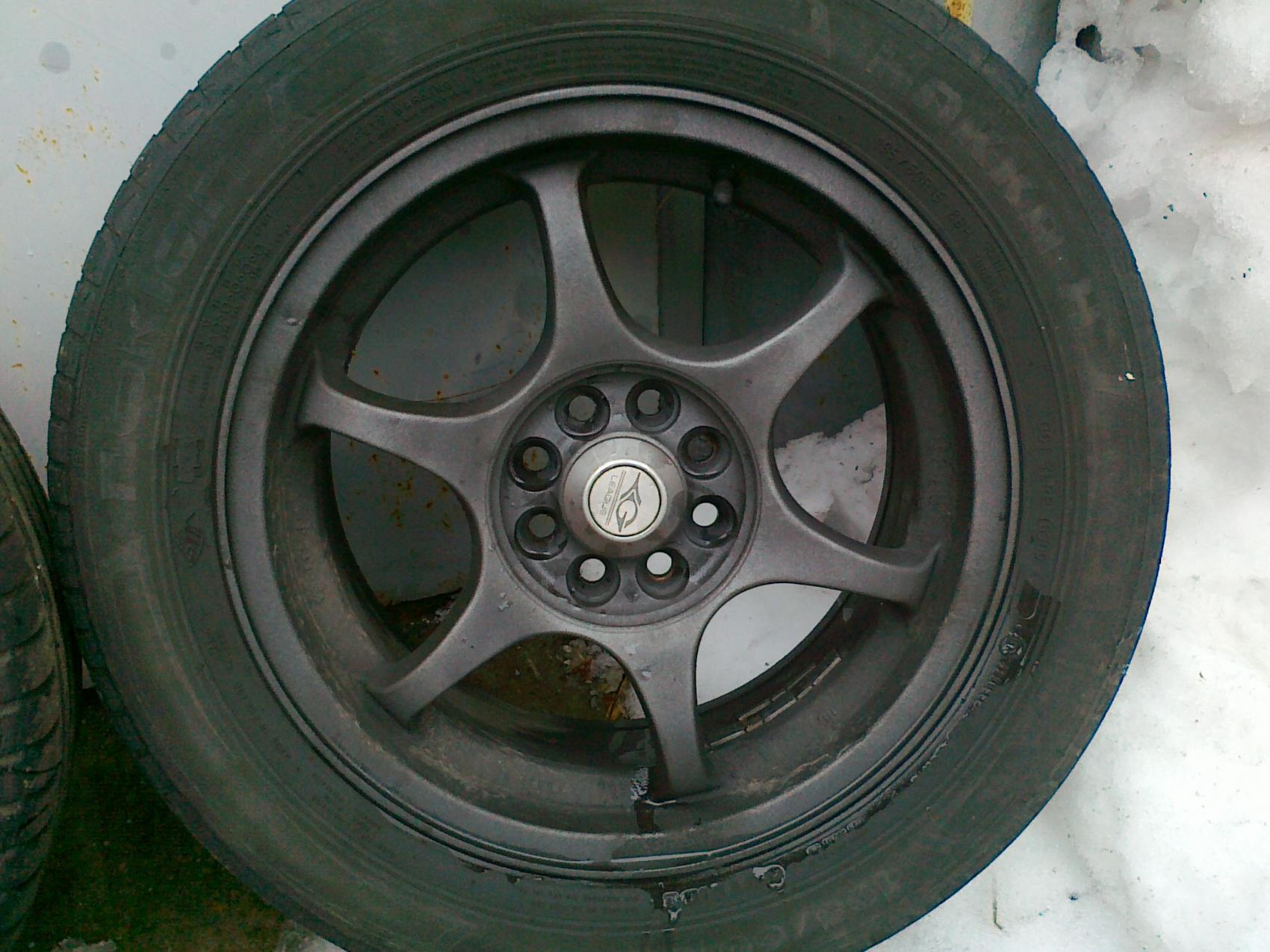 кольца на болты красные + резина Nokian Hakka H 195/60 R15 в хорошем состоянии, на одном боковой надрыв, но не до корда, все лето так и проездил с ним. Цена вопроса за все 3600 гривен
