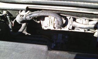 Этот элемент проводки (фото) находится в самом верху открытого капота, прямо под лобовым стеклом, в центре...запотела только изогнутая часть проводки в изоленте, тоесть, "стала мокрой" что ли Rolling Eyes