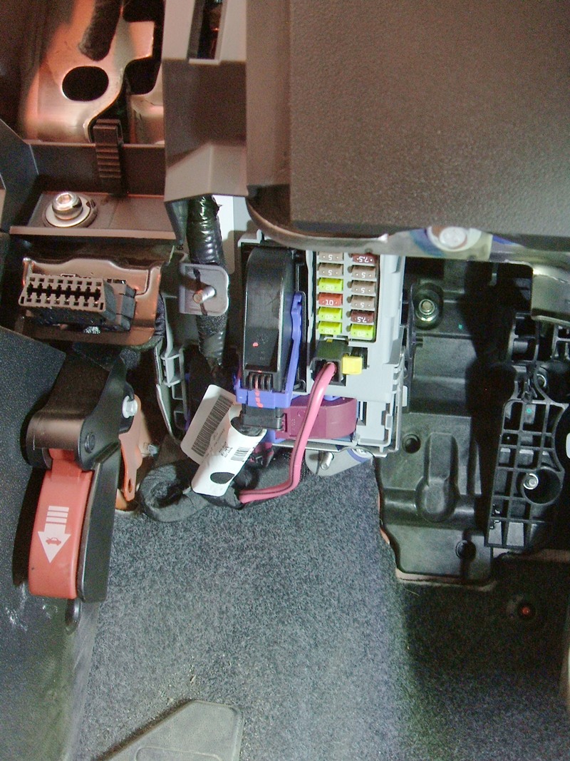 Чтобы добраться до BCM, нужно ОТКЛЮЧИТЬ 12-вольтовый АККУМУЛЯТОР, снять (просто потянув на себя) накладку "торпеды" над левой ногой водителя, и снять защитную панель самого BCM (открутить 2 гайки ключом на 10). Теперь можно отключить ввод 12 В (толстый красный одиночный провод, на его разъёме оттянуть на себя жёлтый фиксатор и ещё нажать на защёлку). Дальше все многоконтактные разъёмы отсоединяются одинаково: прижав "защёлку" около конца "ручки", повернуть эту самую "ручку" почти на 180°. Всего на модуле 3 таких разъёма спереди, и 2 сзади. Все они разные, так что не перепутаешь.