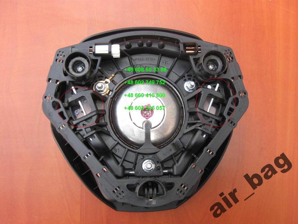 ззаду руля є 2 сірих цятки - треба їх пробити товстими шпицями і одночасно натиснути для того щоб вийшла подушка - далі по стандарту...