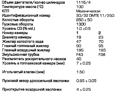 для моторов 1.1 нашел такие параметры карба.