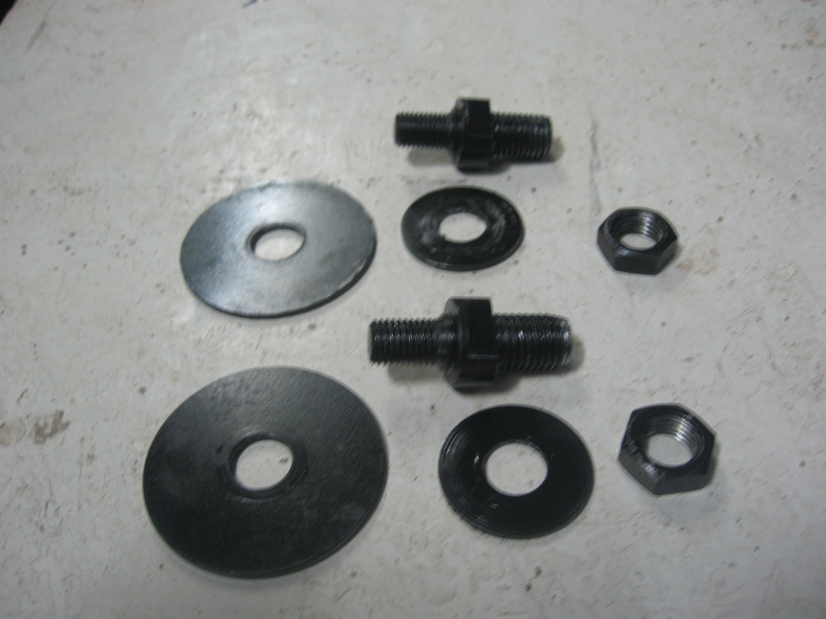 Третий способ переделки отбойников (тот что с чашкой) ! Вытачиваем вот такой комплект валик +толстая шайба (с выбранным внутри отверстием) Привариваем валик к старой чашке Потом накидываем шайбу (отв. во внутрь) одеваем отбойник и прикручиваем (не забываем о большой шайбе изнутри отбойника) А потом берём отбойник за чашку и прикручиваем как родной