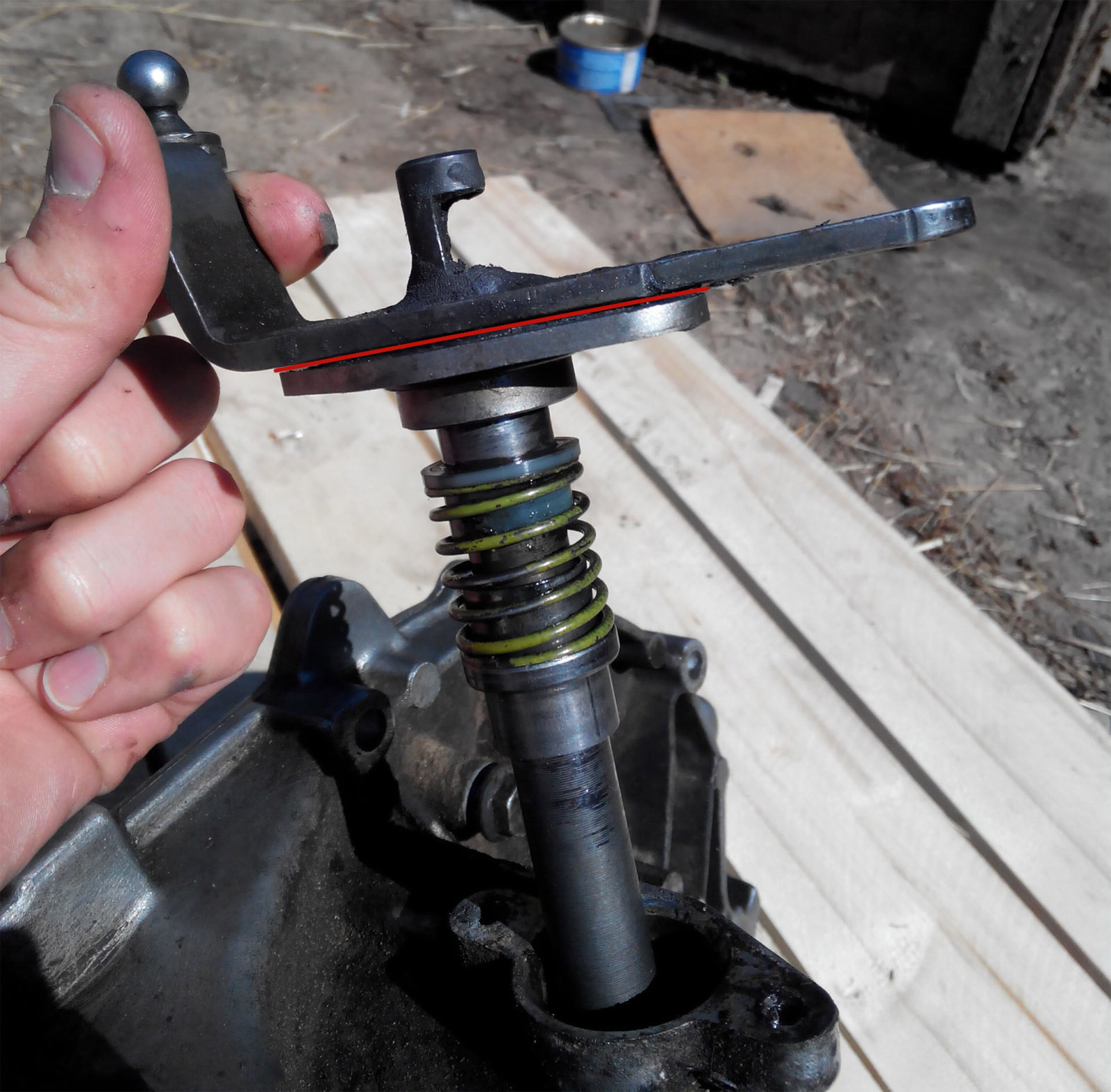Есть еще одно проблемное место - имеется течь из-под штока переключения передач. По раскладке никакого сальника там нет, есть только втулка, похожая на фторопластовую(3). Уплотнительное кольцо(13) есть, но масло выгоняет именно между валом(1) и металлической втулкой(11). На фотке место подтекания обозначил красной линией. Т.е. нужно менять эту фторопластовую втулку?