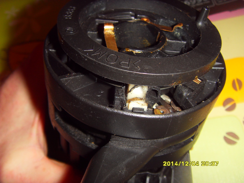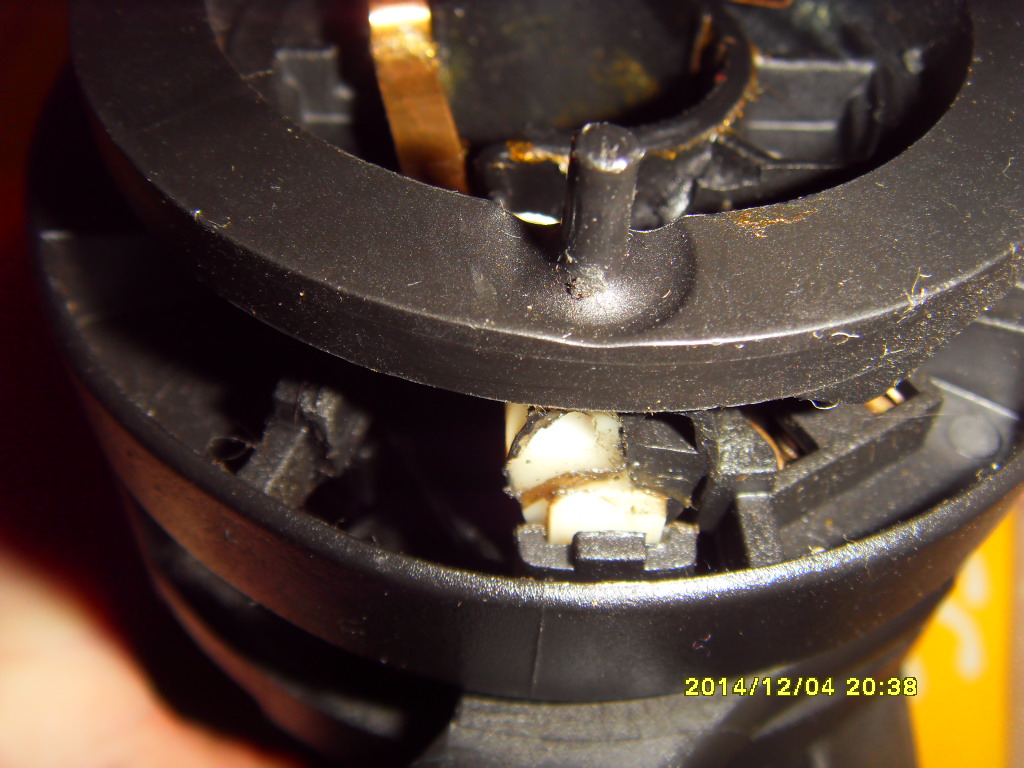 Возврат ещё надо умудриться собрать неправильно.Беленькая хреновинка вставляется в крышку, а крышка одевается на корпус переключателя.Все работает.