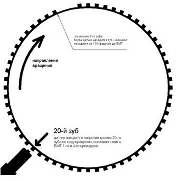 | типосятина писал(а): | Диджиплекс 2 не на реперном диске - там на маховике стоят металлические штифты: через 90 градусов: 1-1-1-2 всего 5 штифтов, с них датчик вращения коленвала считывает сигнал.