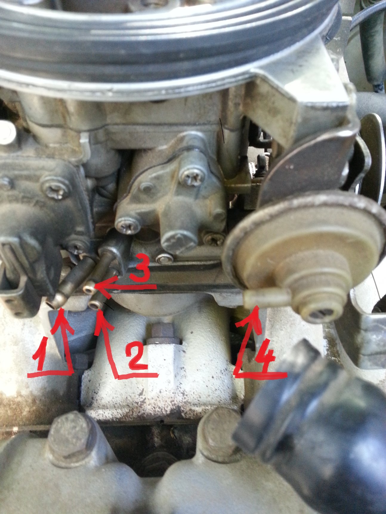 штуцер № 3 - к дифрагме опережения зажигания в трамблере, который у некоторых движков 1.4 расположен на промежуточном валу. у всех остальных, у которых трамблер горизонтальный, на конце распредвала, этот штуцер отсутствует (то есть если движок 1.6., его следует заглушить).