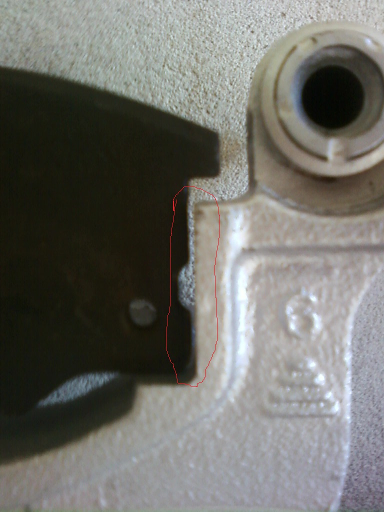 на фото щель 1мм может чуть больше , на перед и зад у меня колодки на скобе впритык , а тут болтаются. Скоба на фото под диск 257 , на скобе выработки почти нет , так должно быть ???