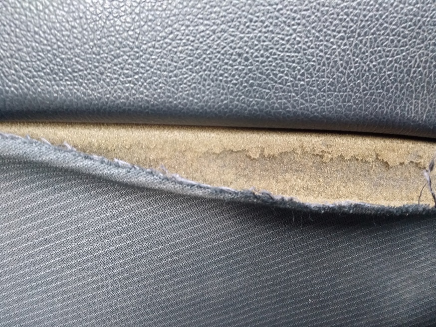 причина ремонта на других фото. поролон со временем трухнет и осыпается. ткань отслаивается.