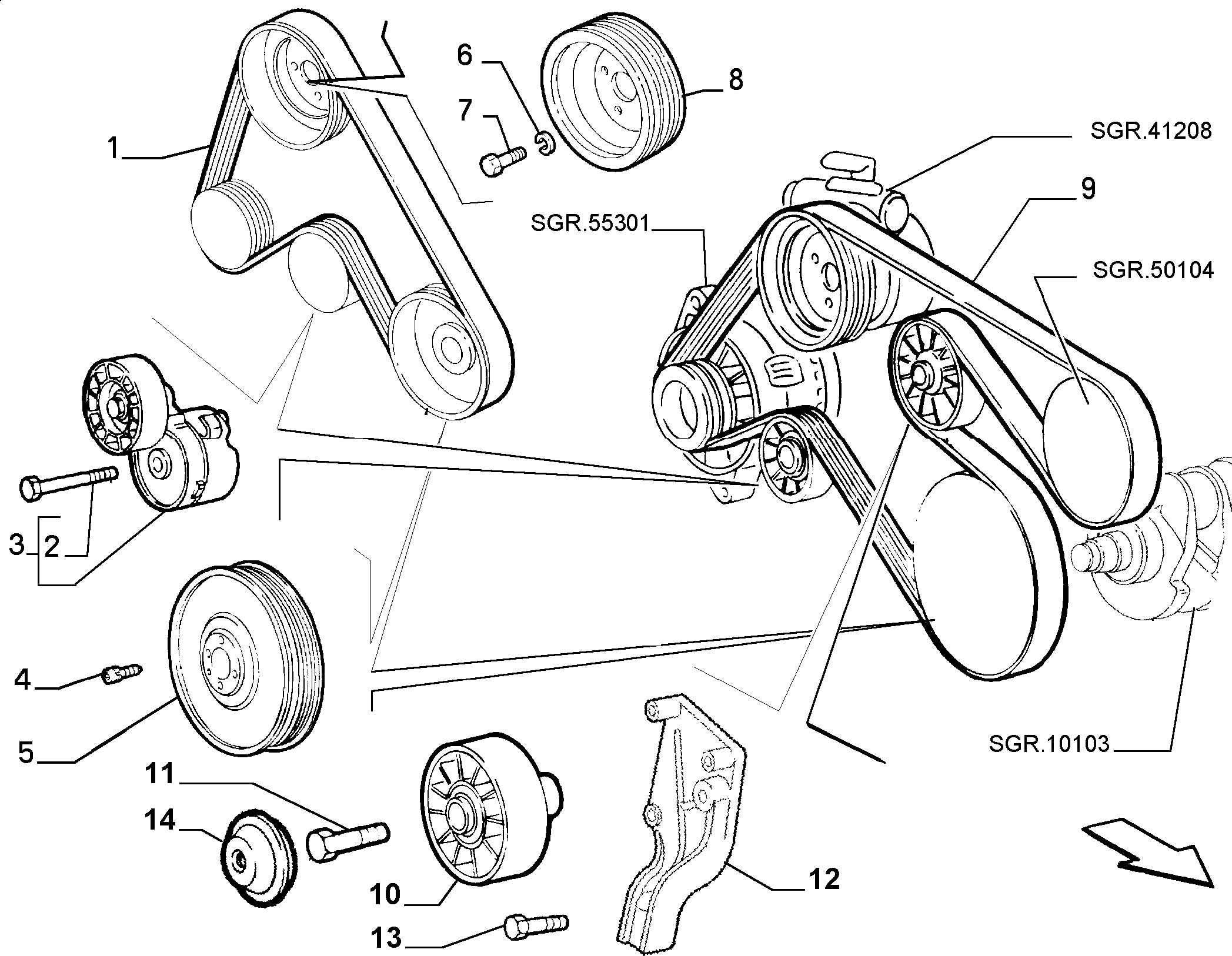 Вчера случился не приятный момент.При заводке двигателя,произошел металлический стук,подумал,что то с бендексом,сразу заглушил мотор.Снова завел,всё работает нормально,прогазовал.Вышел с машины и обнаружил на полу шкив коленвала,заглушил авто,открыл капот,ремень натянут,не понял и "присел" ).Осмотел внимательно.Причина поломки - шкив коленвала (на картинке №5) порвался на резиновом соединении и отлетел,а часть детали (обойма) от шкива осталась на моторе и ней сидит ремень,по этому зарядка не пропала.