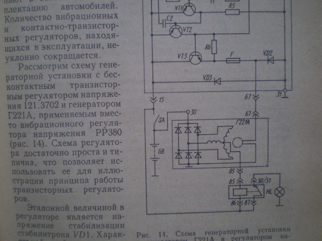 Вот схема вазовского Г221 с идентичным РН, обратите внимание на еще один вывод "85" из генератора и ниже- реле + лампа.