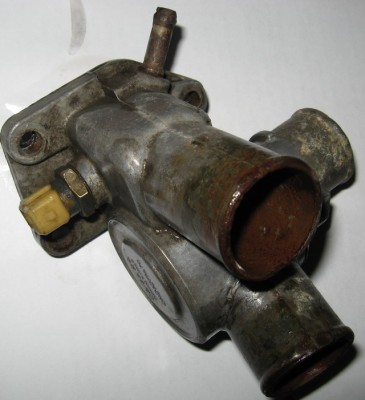 Хочу расказать о небольшом опыте что касаеться термостата, может комуто поможет. Всё началось с того что я закипел от того что заклоинил термостат. Стоял у меня термостат такого типа как на рисунке №1. Купил я термостат как на рисунке №2. Просверлил отверстие под датчик и поставил на машину. После установки машина кипит и термостат отрываеться при тепературе 105-110 градусовно не меньше хотя термостат на 85 градусов. вообщем мучился я долго как не прокачивал систему бестолку так как пришло лето плюнул на это дело и поставил старый термостат предварительно вынув из него все внутренности. Так прошло лето. Пришла осень и проблема стала ребром. Опять термостат в руки и давай работать, что я только не делал и зазоры в помпе замеря и машину под углом ставил и прокачивал система, и штуцер прокачки печки переставлян с подачи на обратку(ктати штуцер так и оставил на обратке так легче печку прокачивать), всё бестолку. Кароче я плюнул на всё пришол к выводу что термостат бракованный вернуть его нельзя так как было просверлено отверстие, чуть поже узнал что такакя проблема не только у меня с такимиже термостатами. Пришол я к выводу что данный термостат не подходит. отличие старого термостата от нового в том что в старом термостате горячая вода полностю прогревает елемент так как он находиться там где идёт жидкость на помпу, а в новом термостате елемент направлен на нижний патрубо, из чего следует что должно пройти болльше времени и больше температура чтобы его прогреть, как говорил мой тесть авто мастер это всёравно что набрать в рот воды сесть на плиту и ждать пока она закипит во рту, тоесть я хочу сказать что нада покупать термостат такой как старый, но так как таких небыло то я сделал так. Поставил термостат от ВАЗ 2101 на патрубках.
