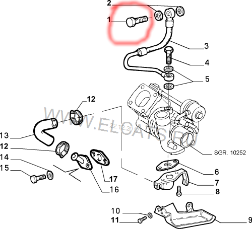 Ищу болт крепления трубки подачи масла в турбину к блоку.