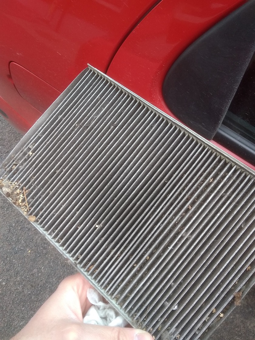 Зняв фільтр салону. Він виявився геть забитий листями, та усяким мотлохом з дерев. Фільтр викинув, поставив кришку на місце.