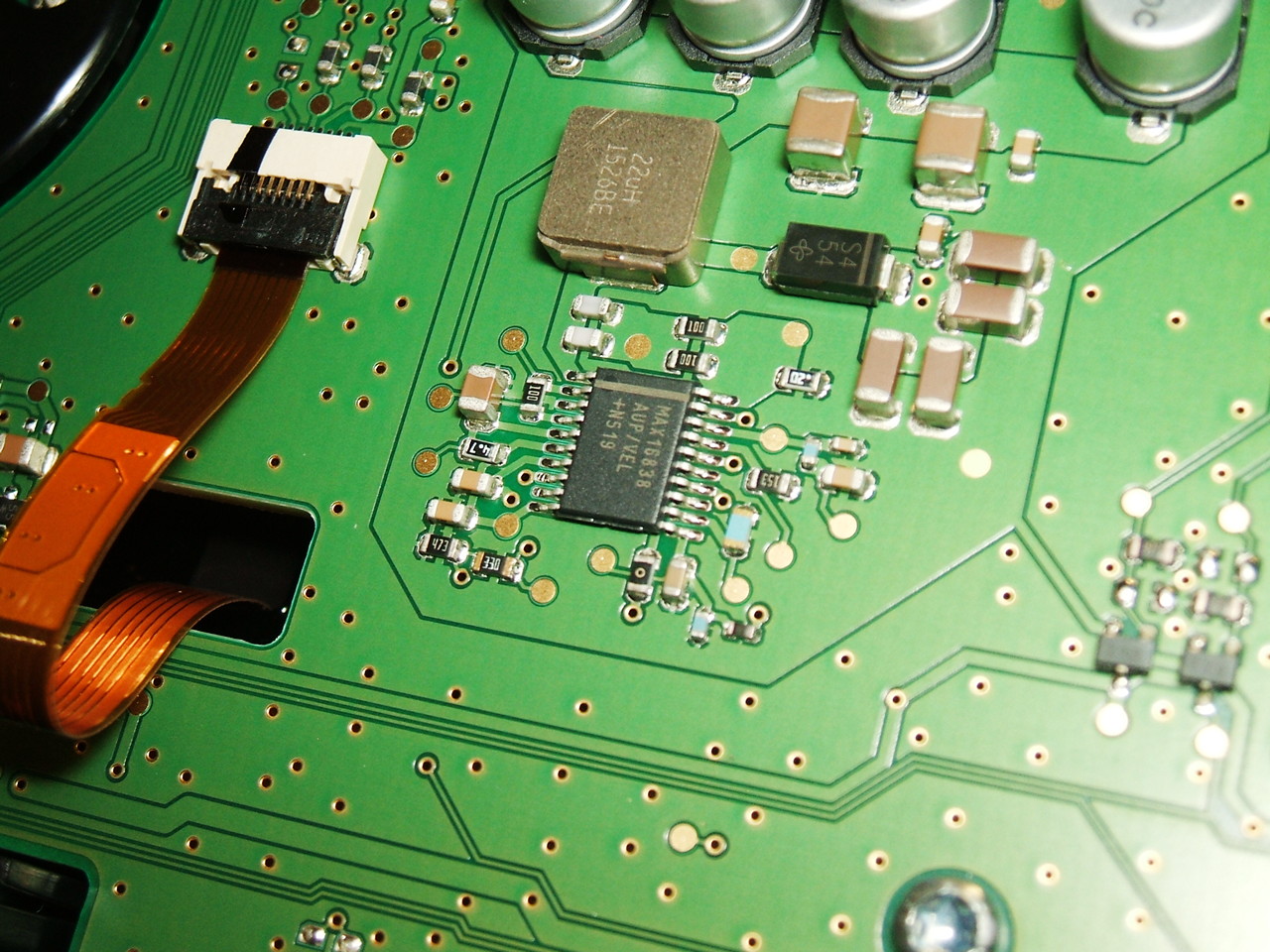 Попробовал хотя бы просто подать +12В. Выключенное устройство сожрало 0.55А! Включаться, естественно, не захотело. Пощупал ТДАшку -- греется! Отрезал питание на TDA7563A (не знаю, только ли это на неё, но похоже всё таки на выделенный канал +12В прямо к усилителю) -- потребление сразу стало 36 миллиампер, что вполне приемлемо для спящего устройства (хотя и многовато для аккумуляторного питания ).