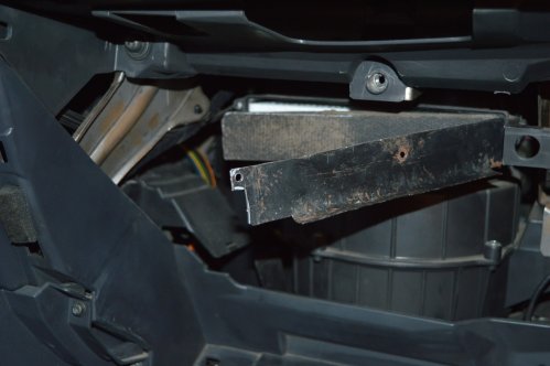 | Сняв планку с бокса, где находится фильтр ( как тут в теме уже описывалось выше), мы обнаруживаем фильтр салона уже не первой свежести |