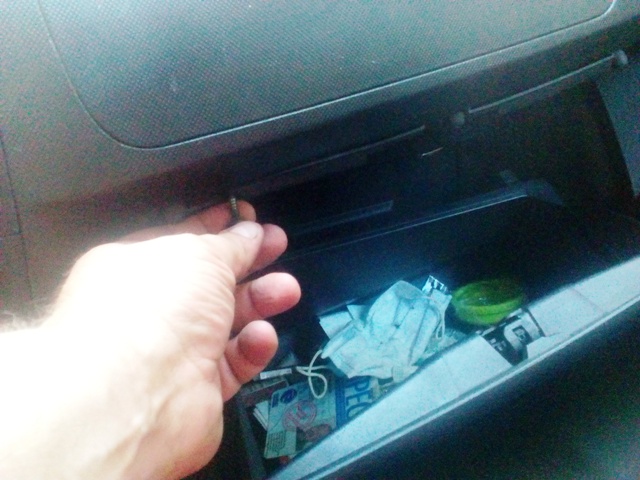 | Сначала открываем бардачок и откручиваем большой шуруп в глубине открытого бардачка. |