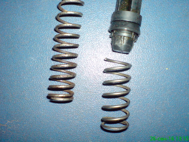 C пружинами не так все просто. Вся проблема в том . чтобы не встретить поршень с крестовиной упора пружины внизу цилиндра. Когда лопнула моя пружина ,я сжал ее куски до упора и получил 1.8 см. От этого и отталкивался в поисках новой. Старая пружина : Толщина витков 1.5 мм, расстояние между витками 5 мм , длина 6.5 мм , внутренний диаметр 12 мм. Новая пружина : толщина витков 1.5 мм , расстояние между витками 3 мм , внутренний диаметр 11 мм . Чтобы подогнать размер , подсчитываем и подгоняем , в моем случае длина 6 мм , ну и про упругость не забываем , чем больше упругость пружины , тем больше ее ресурс. Ну а про встречу , поршня с пластиком крестовины упора пружины , думаю про лопнувший цилиндр . На фото видно не совпадение витков , но упругость новой больше .