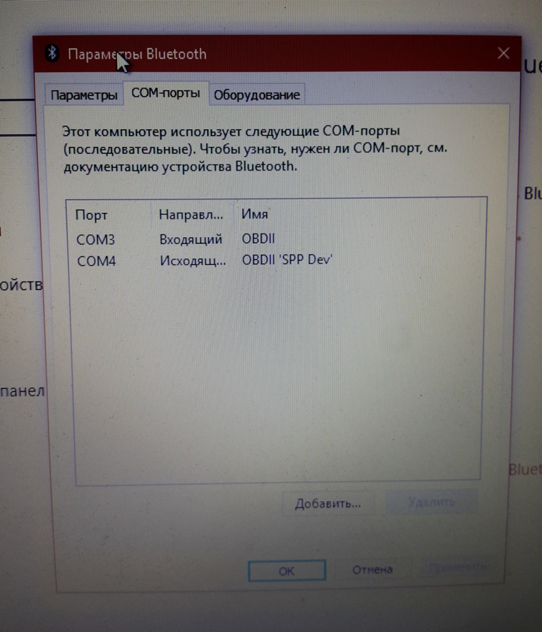 1. После сопряжения адаптера, он создает виртуальный COM-порт в компьютере. Это можно увидеть в настройках компа (в моем случае в настройках bluetooth) - ФОТО 1. Как видно, СОМ-порта 2шт.