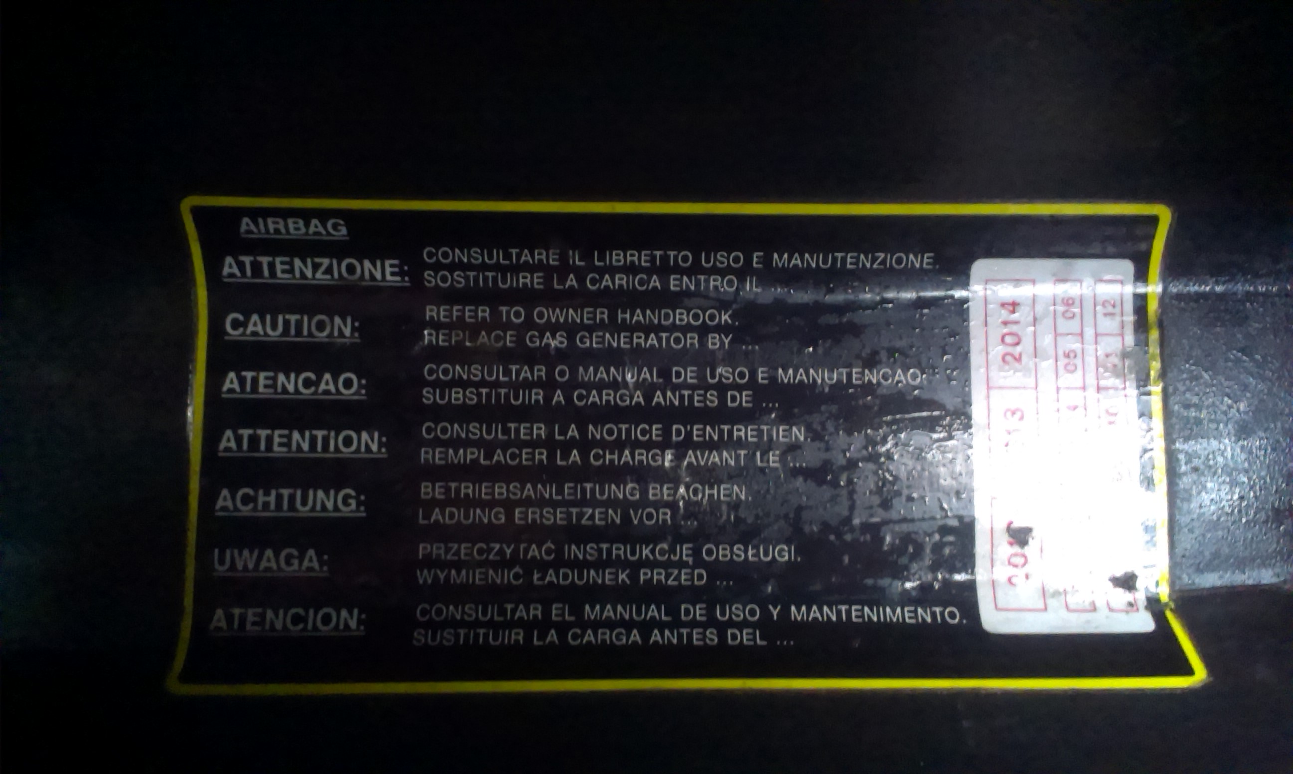 У меня под капотом. Да. Это график ревизии, ТО для подушек, замена газогенератора для выстрела подушки. По правильному должен меняться на новый согласно графика.