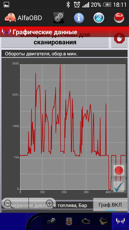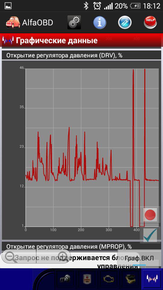 Сделал скрины на горячую... таки расходомер шалит, падла. При этом ошибка в ЭБУ не появилась Shocked Обратите внимание - после поездки заводил дважды, при этом регулятор давления ведет себя, ИМХО, странно.