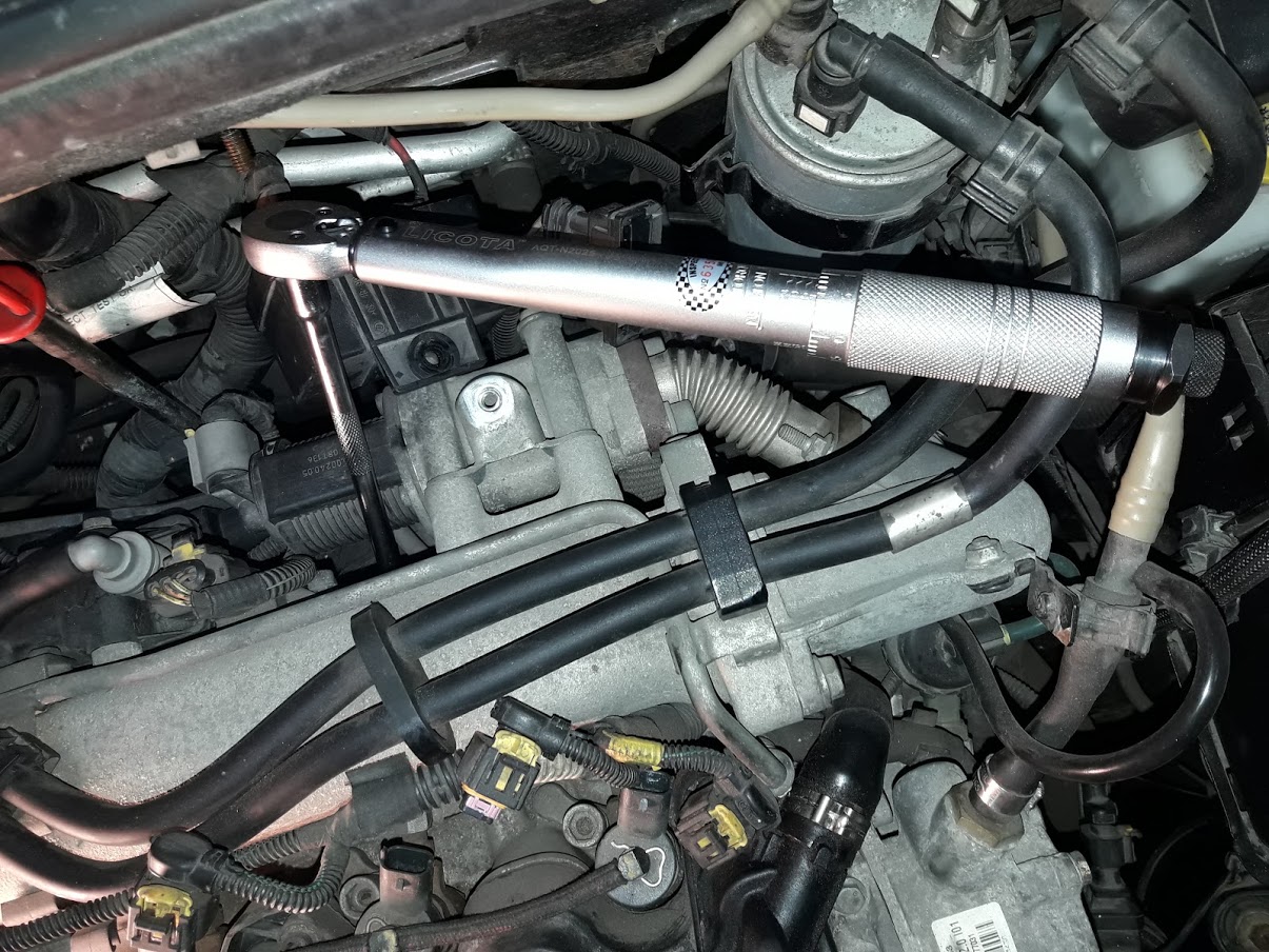 Для вкручивания свечи чтобы не сорвать первые витки криво расположенной свечой можно на электрод свечи одеть резиновый шланг и им завернуть свечу на несколько витков. Далее обычной трещоткой закрутил свечу до остановки без прикладывания усилий. А потом затянул динамометрическим ключом усилием 12 Нм до первого щелчка. На самом деле усилие 12 Нм - очень небольшое. И затягивая вручную - элементарно просто перетянуть свечу. Из-за таких вот чрезмерных затяжек и происходят в будущем изломы свечей накала при попытках их выкрутить.