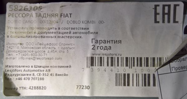 | Добрый вечер,форумчане. У меня Doblo 1,4л.,223 кузов 2011г. Тоже столкнулся с проблемой рессор. Начал изучать эту проблему, облазил украинские и российские форумы,везде одна и та же информация, о дополнительных рессорах от Волги,пружинах всевозможных или пневмо. Но меня эти варианты не устраивают, хочу просто поменять на новые рессоры. Номер моих 51848221 в оригинале,даже на сегодня цена" космос ",но есть большой выбор не оригинальных рессор с сайлентблоками по приемлемой цене. Lesjofors(5826105)Швеция. TES(518482230019)Польша. Celikyay(010025901)Турция. На форумах находил информацию по Lesjofors и Celikyay,но это единичные сообщения, без какой-нибудь конкретики о качестве и ресурсе. Пожалуйста,у кого есть опыт эксплуатации этих или других рессор ,напишите