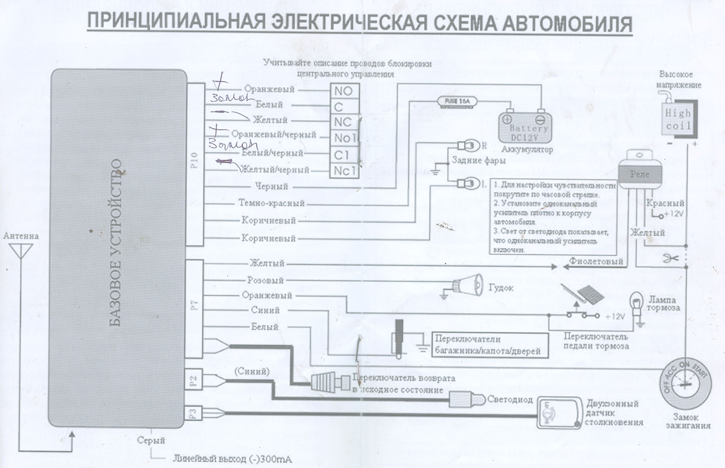 вопрос есть белый провод на замок зажигания, но подключается по ходу рисунка не на позицию когда зажигание включено может кто подскажет что они этим хотели сказать. чтона него приходит плюс или как? и зачем