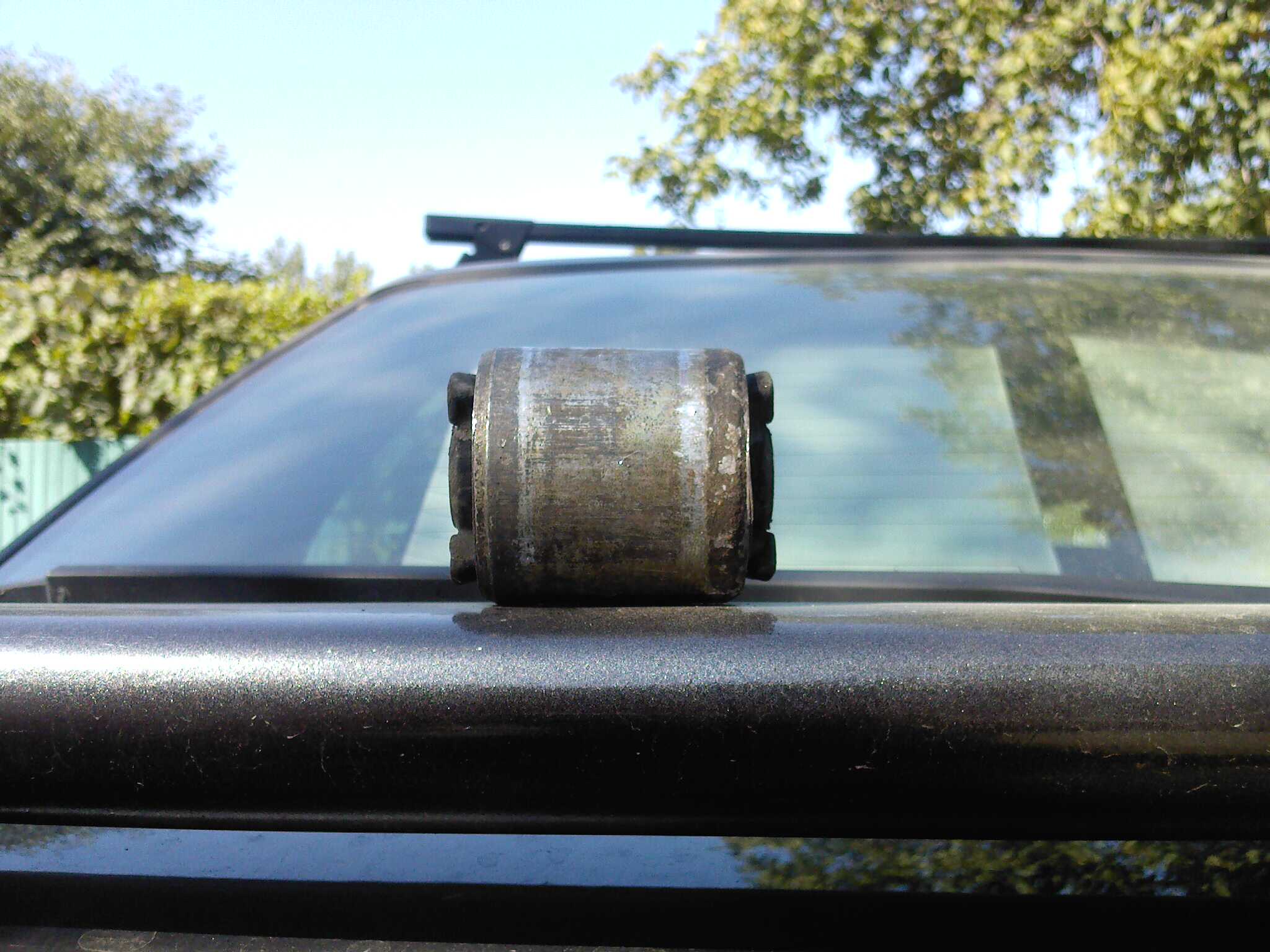 Загремела задница, вот я как бравый хлопец полез смотреть, сайленблоки, поперечной тяги(балки), ага (из опыта знаю луше на рынок тянутся со старыми как образец, бо патом замучеешси менять...), вощем разабрал, выпресовал, в руках аказались по 2 одинаковых сайленблока, поменьше (были выпресованы непосредственно из ступицы) и побольше (соответственно из самой балки), маленькие искать непришлось, в гораже валялись от старай джиги, нашол их, перемерял, 1 к 1 ... почти, наружный чууууть-чууть несовпал, за пузырь токарь знакомый подогнал к нужному размерчику и о чудо новые сайленблоки на месте,а вот с большими началось самае тикавае.... :