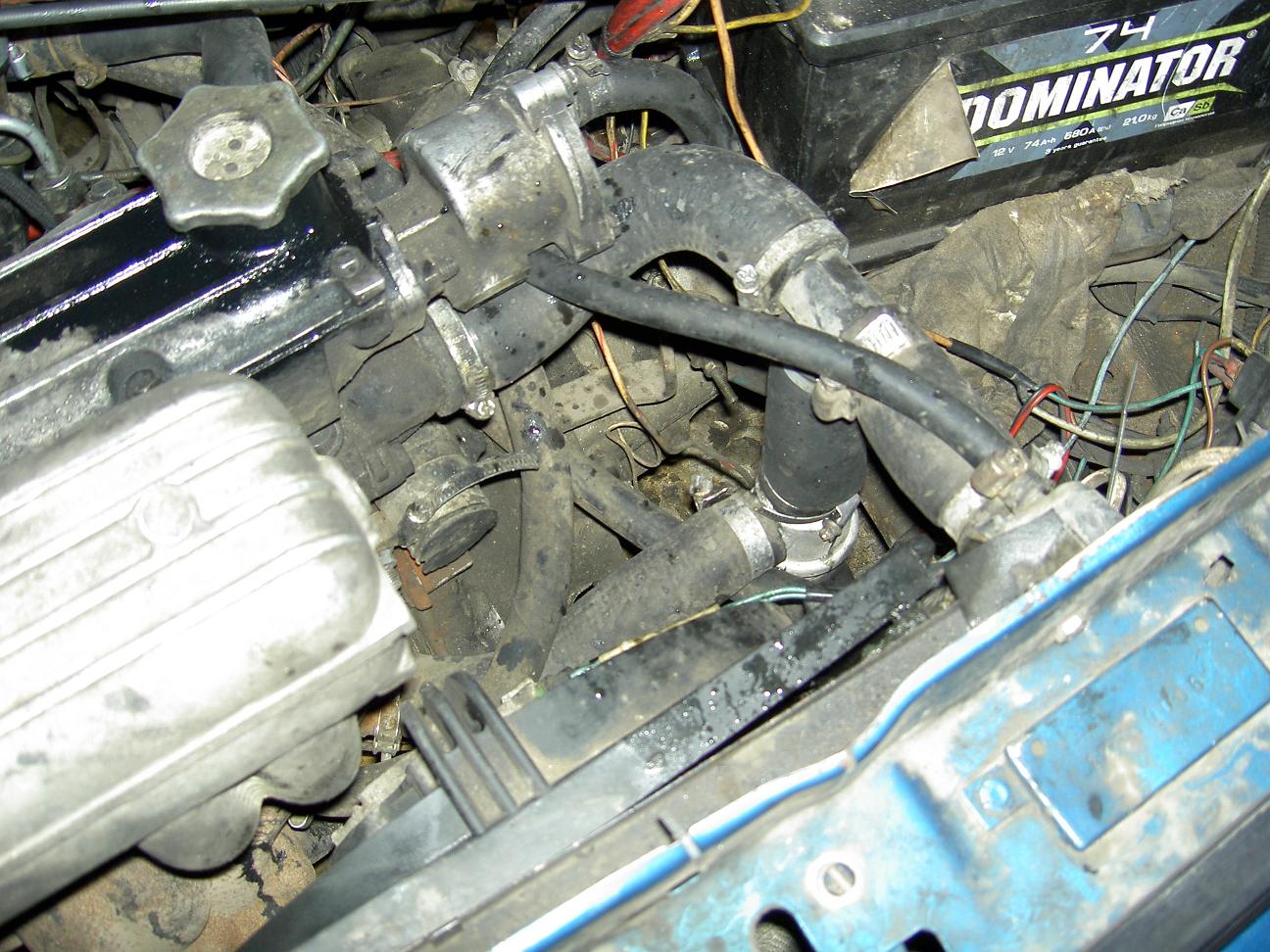 Сегодня наконец-таки дошли руки поставить термостат(так как описал здесь med_max).Поставил,завел-нагрелась до70 довольно быстро,выехал на трассу-тепература почти 90,а из печки идет холодный воздух.Проехал километра3-всеравно холодный дует,остановился потрогал шланги идущие на печку-холодные.Заглушил двигатель снял подающий шланг на печку а из него течет холодный тосол,из двигателя вытекает горячий,шланг обрата с печки тоже холодный.Как думаете,почему печка не греет? Если у кого есть схема систем охлаждения скиньте пожалуйста