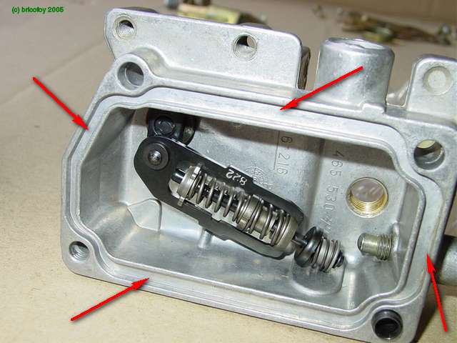 | Верхняя крышка ТНВД BOSH изнутри; стрелками указан паз для прокладки. |