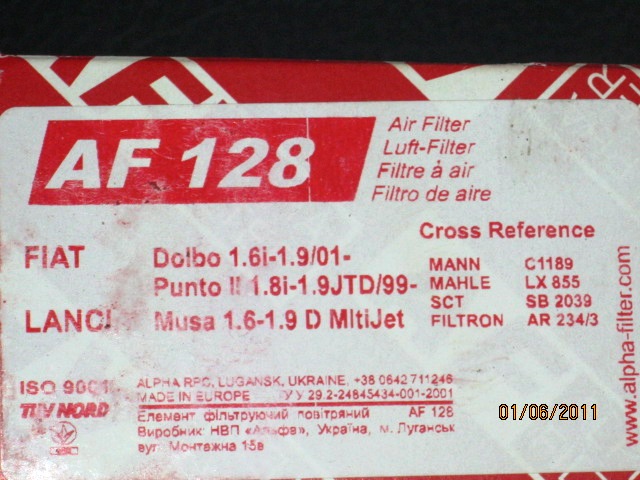 СообщениеДобавлено: Ср Апр 27, 2011 15:31    Заголовок сообщения: Воздушный фильтр на doblo 1.9 jtd Ответить с цитатой