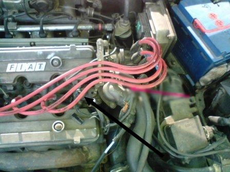 Датчик находится прям перед корпусом термостата, если смотреть между двумя клапанными крышками. НЕ ПУТАТЬ с ДТОЖ, который между 2 и 3 свечей.